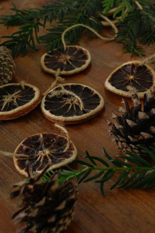 Aus getrockneten Orangenscheiben und Gartenschnur machen Sie diese natürlich schöne Girlande. Hängen Sie sie in den Baum oder ins Fenster.