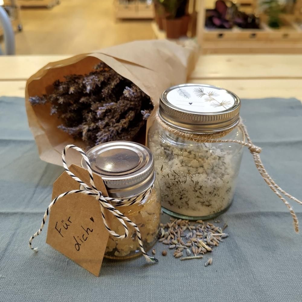 Stellen Sie bei Tee und in gemütlicher Atmosphäre Ihr eigenes Körperpeeling mit Zutaten wie Lavendel, Thymian und Honig her.