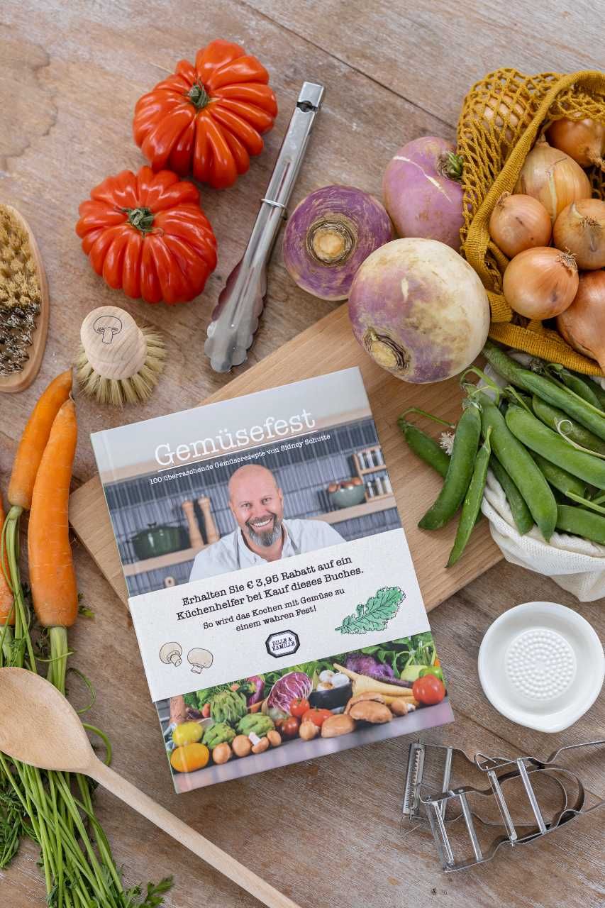 Gemeinsam mit dem Küchenchef Sidney Schutte haben wir das Kochbuch Gemüsefest entwickelt. Mit 100 überraschenden Gemüserezepten, viel Info zu den verschiedenen Gemüsesorten und einem hübsch illustrierten Saisonkalender.