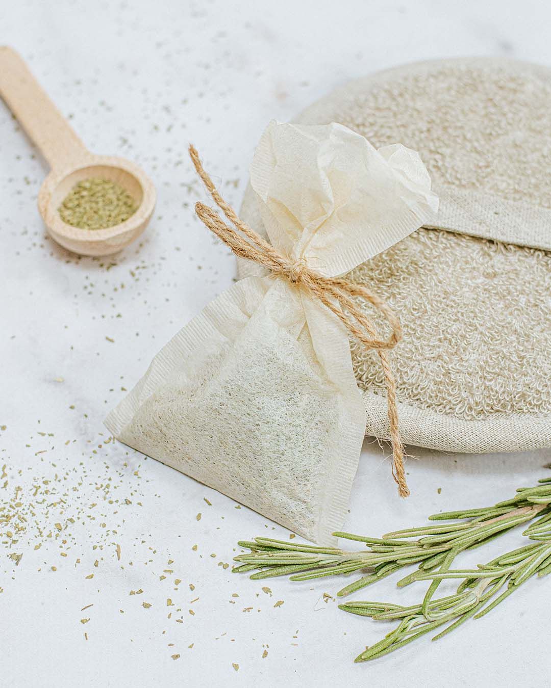 - Grünen Tee und Rosmarin mischen und in einen Teefilterbeutel geben.