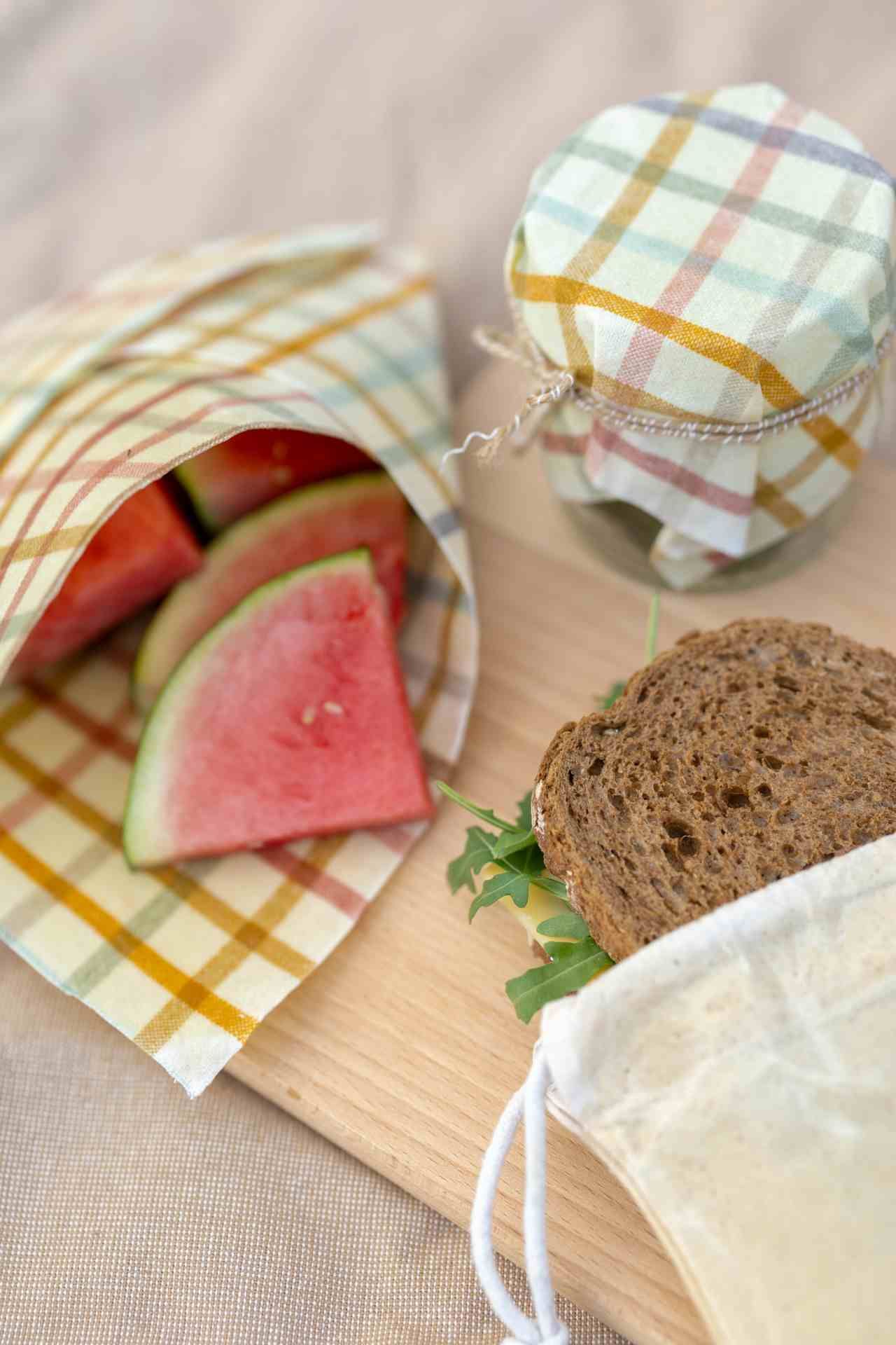 Bienenwachstücher sind ideal zum Abdecken von Schalen und Schälchen und um Stullen, Käse oder Gemüse einzuwickeln. Aus Stoff in der gewünschten Größe und Bienenwachsgranulat kann man sie ganz leicht selbst machen.