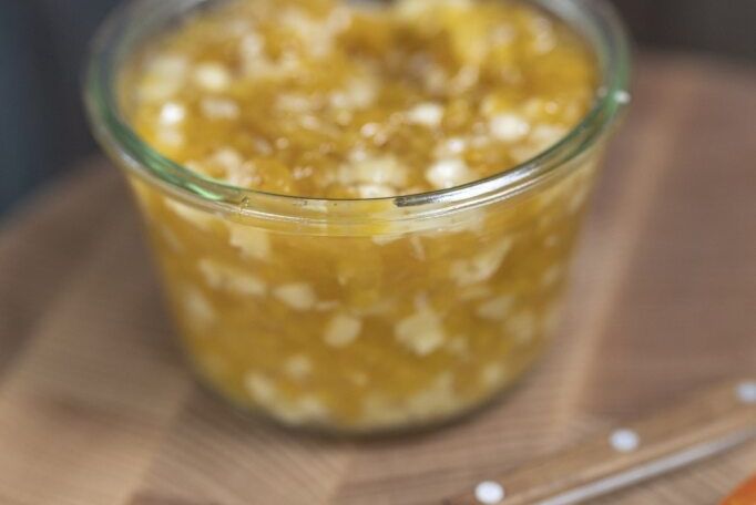 - Die Gläser zum Abkühlen auf den Kopf stellen und danach Etiketten mit dem Inhalt und Zubereitungsdatum aufkleben.