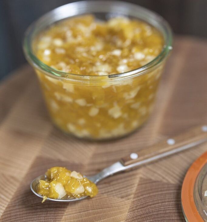 In dieser Konfitüre werden die Aromen süßer Pfirsiche nussartiger Mandeln kombiniert. Die feingehackten Mandeln geben der Konfitüre außerdem noch etwas ‘Biss‘.