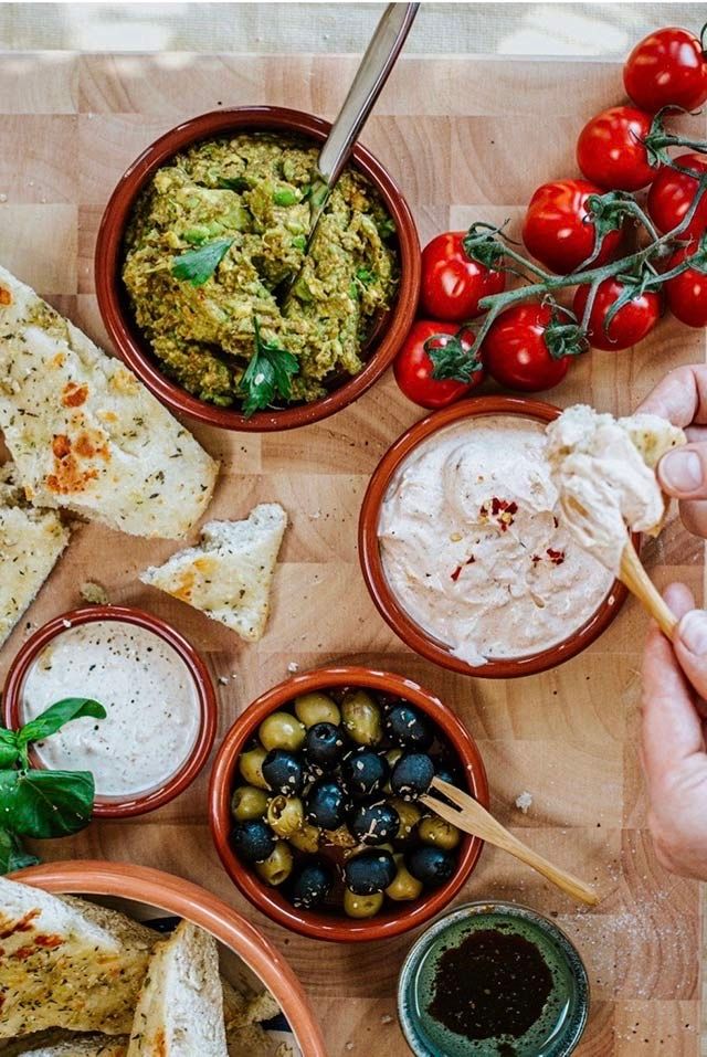 Rühren Sie die Dips gut um, würzen Sie mit Salz und Pfeffer und dippen Sie ein Stück frisches Brot ein!