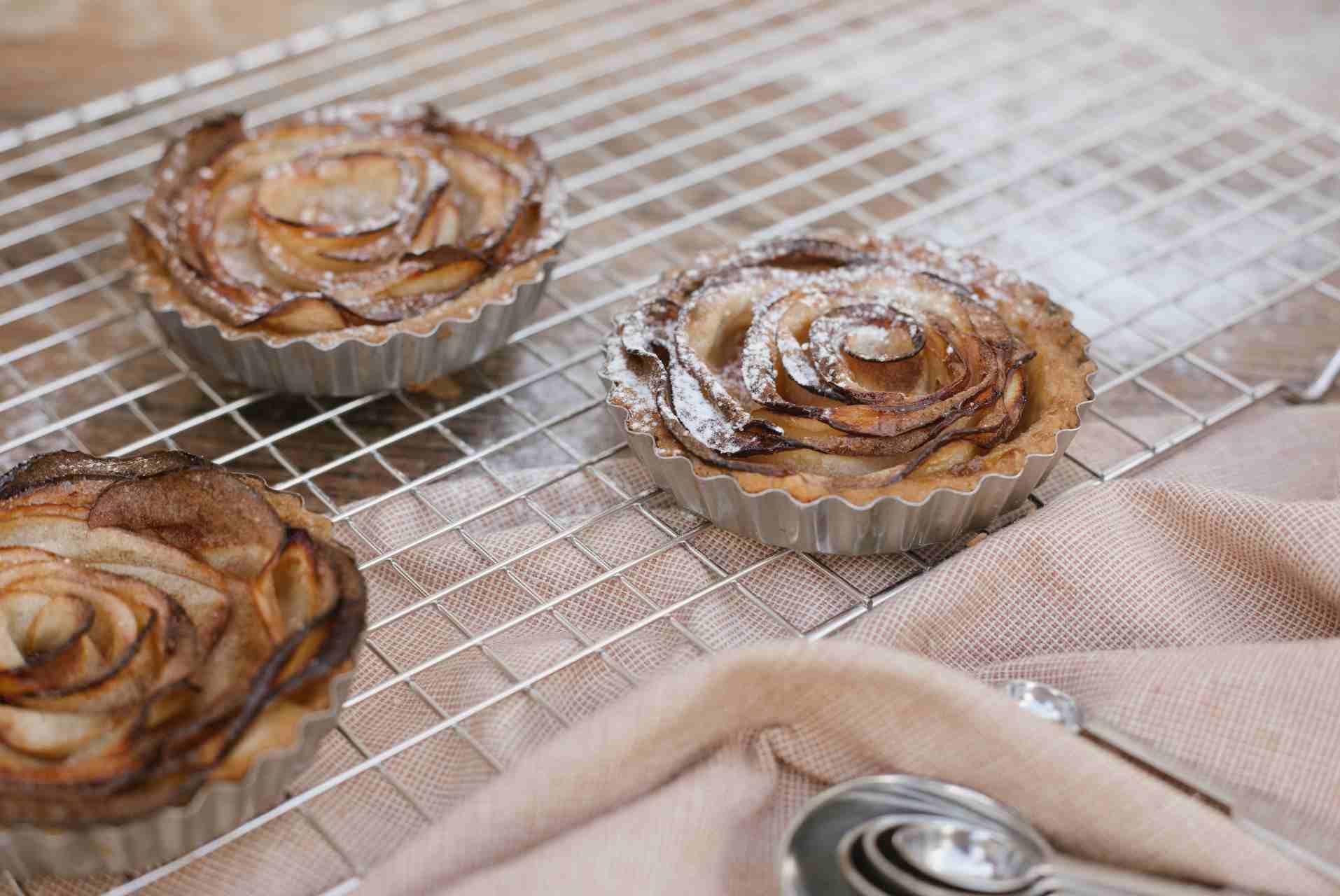 - Die Apfelröschen etwa 20 Minuten lang backen (bis die Kruste goldbraun ist).