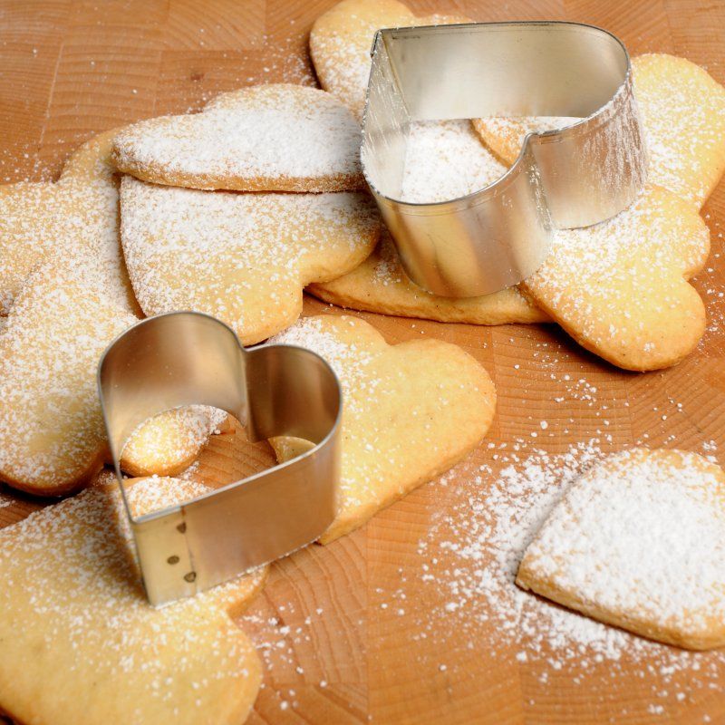 Außerdem: Teigschüssel*, Mehlsieb*, Zesteur*, Nudelholz*, Ausstechform*, Backblech*, Kuchengitter*