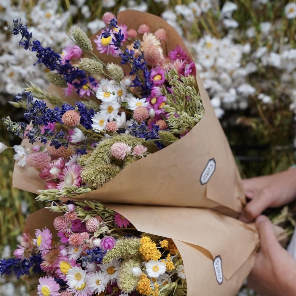 Die Trockenblumensträuße von Dille & Kamille sind aus verschiedenen Blumensorten zusammengestellt. Es gibt aber auch gebundene Sträuße mit nur einer einzigen Sorte wie z.B. Lavendel oder die gelben Kugeln der Craspedia. In unseren Geschäften bieten wir ein wechselndes Sortiment an Trockenblumen an. Schauen Sie regelmäßig in einer Dille & Kamille-Filiale vorbei, um zu sehen, welche Trockenblumen wir gerade auf Lager haben!