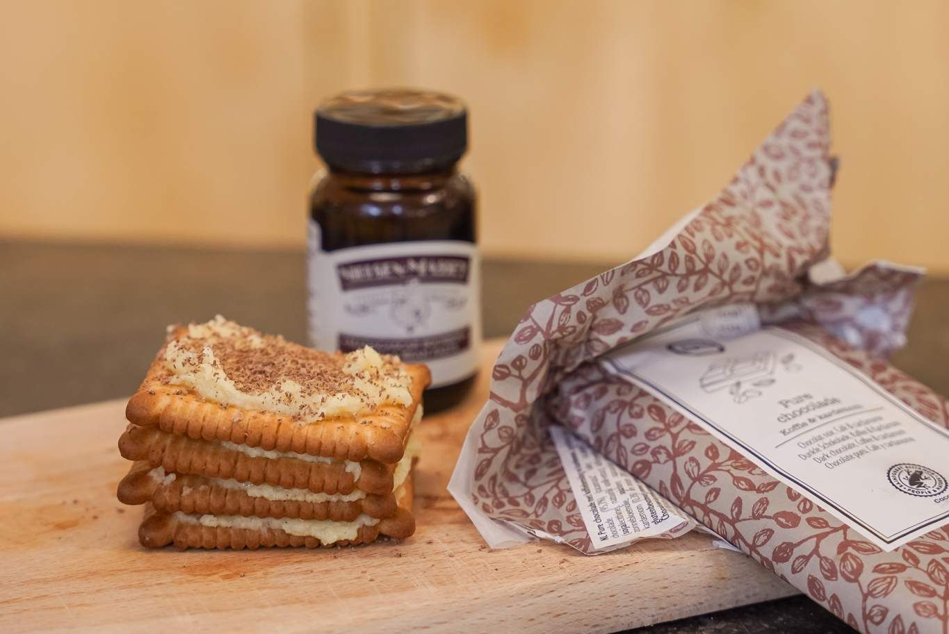Tipp: Sie können die Petit beurre-Schnitten so groß oder klein machen, wie Sie möchten. Auch als Kuchen in Form eines Quadrats oder Rechtecks.