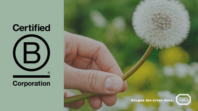 B Corp ist eine international anerkannte Zertifizierung für kommerzielle Unternehmen, die einen positiven Einfluss auf Menschen, Umwelt und Gesellschaft haben. Und von nun an ist Dille & Kamille auch B Corp zertifiziert!