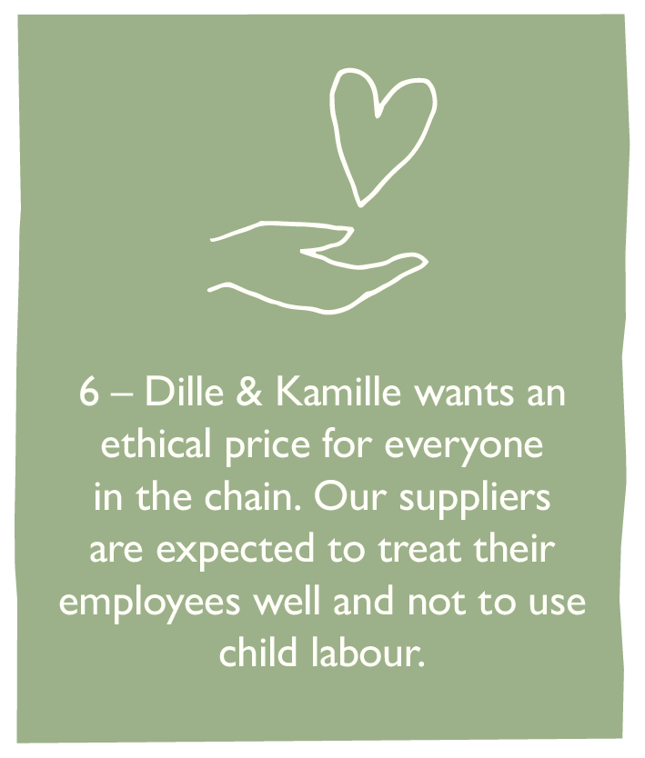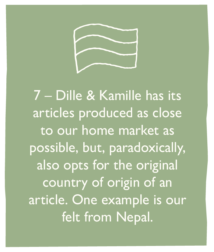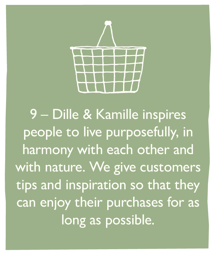 Wir haben kürzlich unseren ersten Nachhaltigkeitsbericht veröffentlicht. Wir haben untersucht, wo wir den größten Einfluss auf Mensch und Umwelt haben. Wir haben die Ergebnisse dieser Untersuchung aufgegriffen und umgesetzt und uns Ziele gesetzt, wie wir unsere Leistung in jeder Kategorie verbessern können. Sie können den Nachhaltigkeitsbericht von Dille & Kamille hier herunterladen.